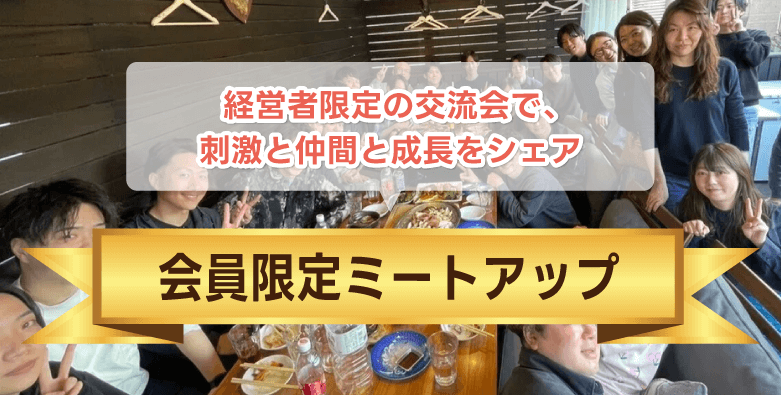 メンバー限定で毎月開催する交流会。美味しい食事を食べながら、他業種の成功施策に触れたり、自分の悩みを共有できたり、さらには仲間同士でジョイントベンチャーを計画したり、経営者ならではの質の高い時間を過ごすことができます。(飲食代は別途になります)