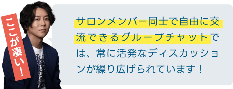 「この配信、どう思う?」を気軽に聞ける、常時オープンな交流チャット。経営者同士のつながりができることで、孤独を感じず、モチベーションも高まりやすくなります。レクセリサロンでは、常に活発なディスカッションが繰り広げられています。チャットを眺めているだけでも勉強になること間違いなしです。
